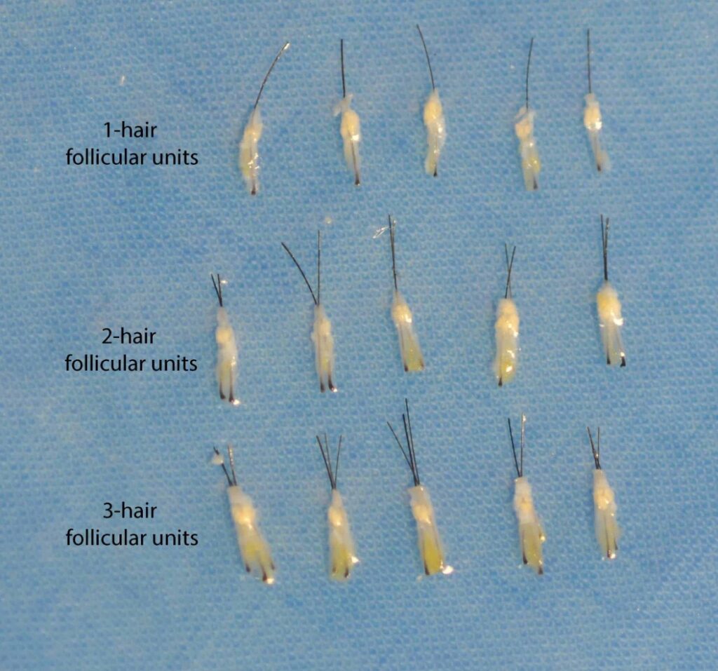 In modern hair transplantation, hair follicles are implanted individually. This technique of transplanting so-called “micrografts” can yield natural-looking results and produce a high degree of patient satisfaction.